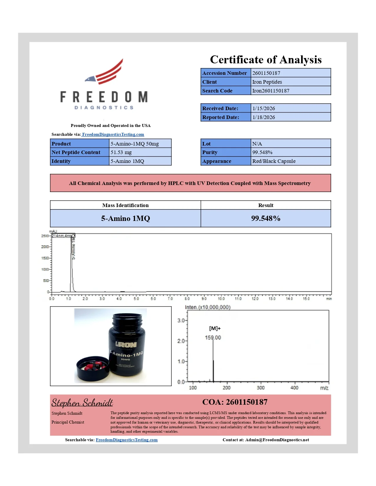 Each capsule contains 50 mg of 5-Amino-1MQ.